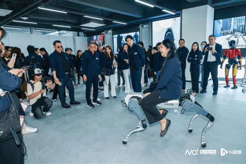 在玉树智能机器人(ren)有限公司,代表团观摩了玉树智能具身机器人(ren)演示中心。泰商们骑在玉树智能的大型机器狗身上,让(rang)机器狗带着自己走路,新奇和愉悦在他们的脸上一览无遗。