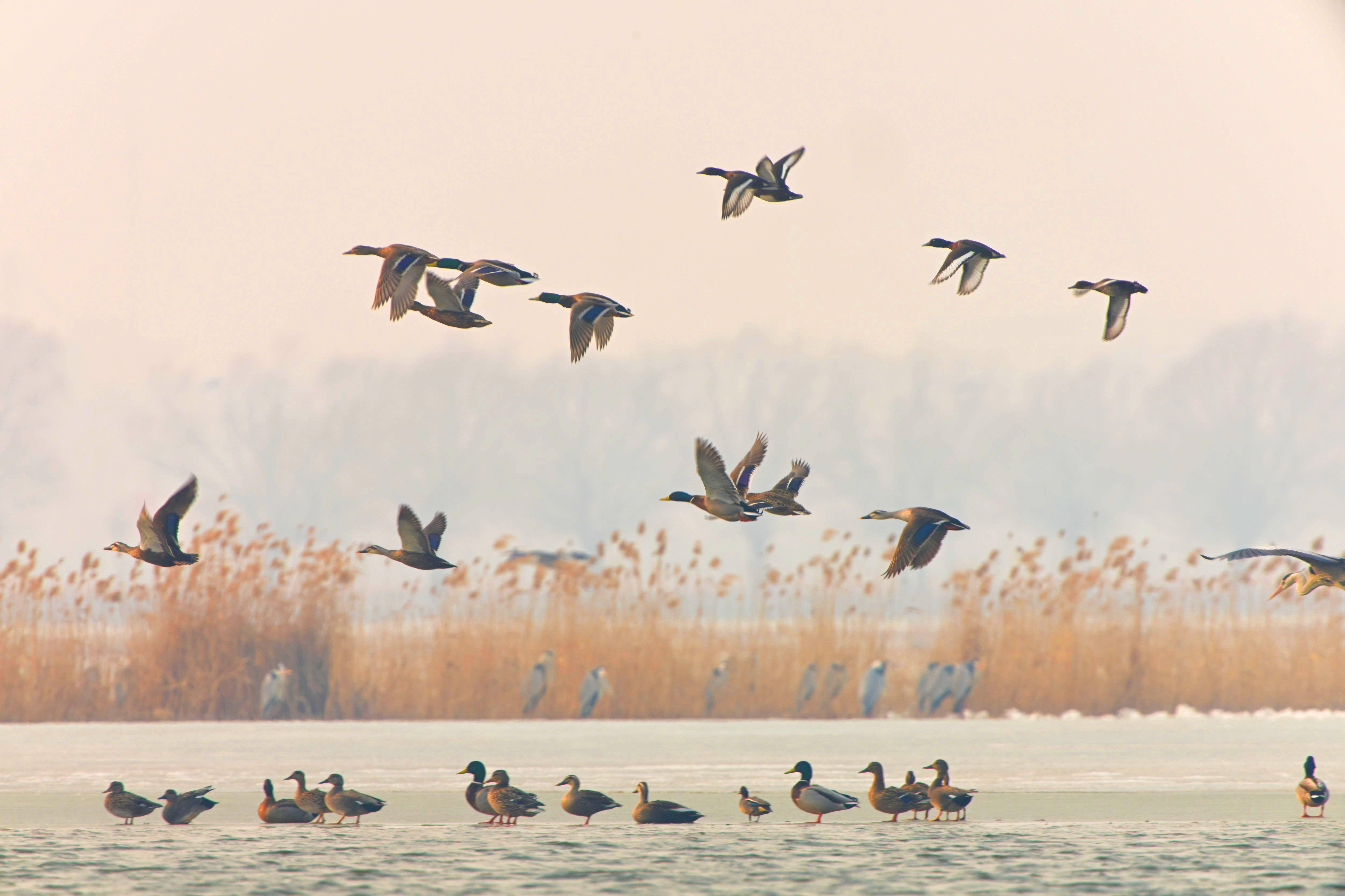 这是3月17日(ri)正在(zai)黑龙(long)江省齐齐哈(ha)尔市拍摄的野鸭群。 新华社发(王勇刚摄)