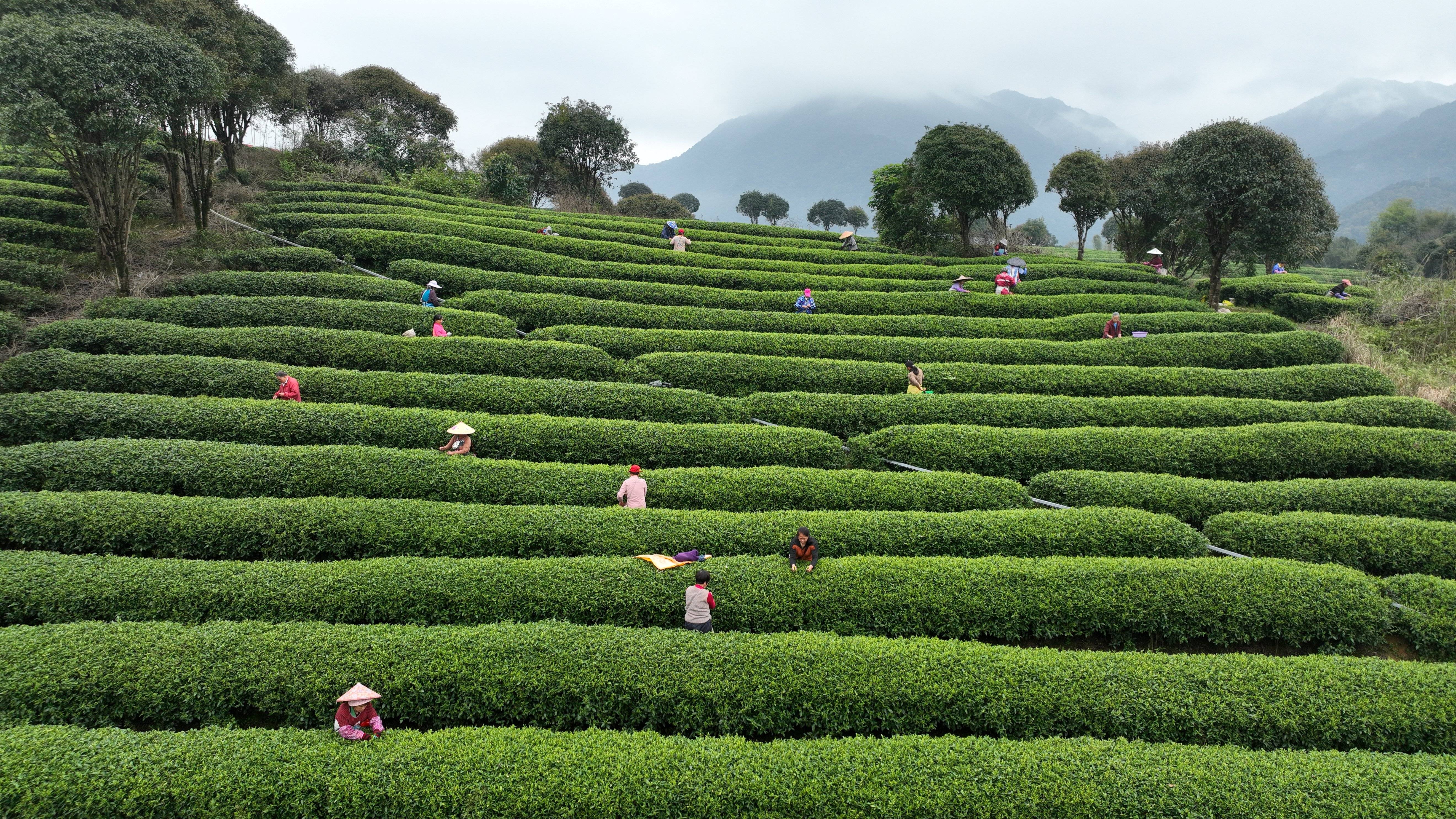 3月17日(ri),茶农(nong)正在(zai)广西昭(zhao)平县昭(zhao)平镇花六茶园采摘春(chun)茶。 新华社发(左德强摄)