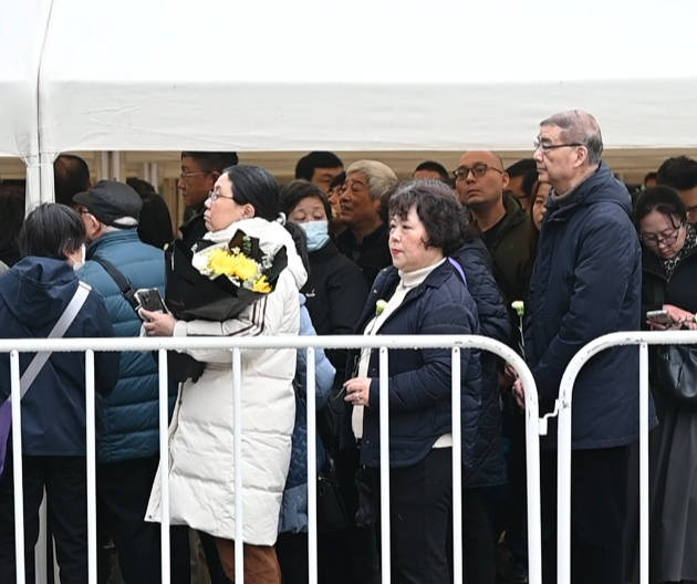 3月18日上午10时,于漪告别仪式在龙华殡仪馆举(ju)行,前来送别的人排起了长队。本文图(tu)片均为 澎湃新闻记(ji)者张呈君 图(tu)