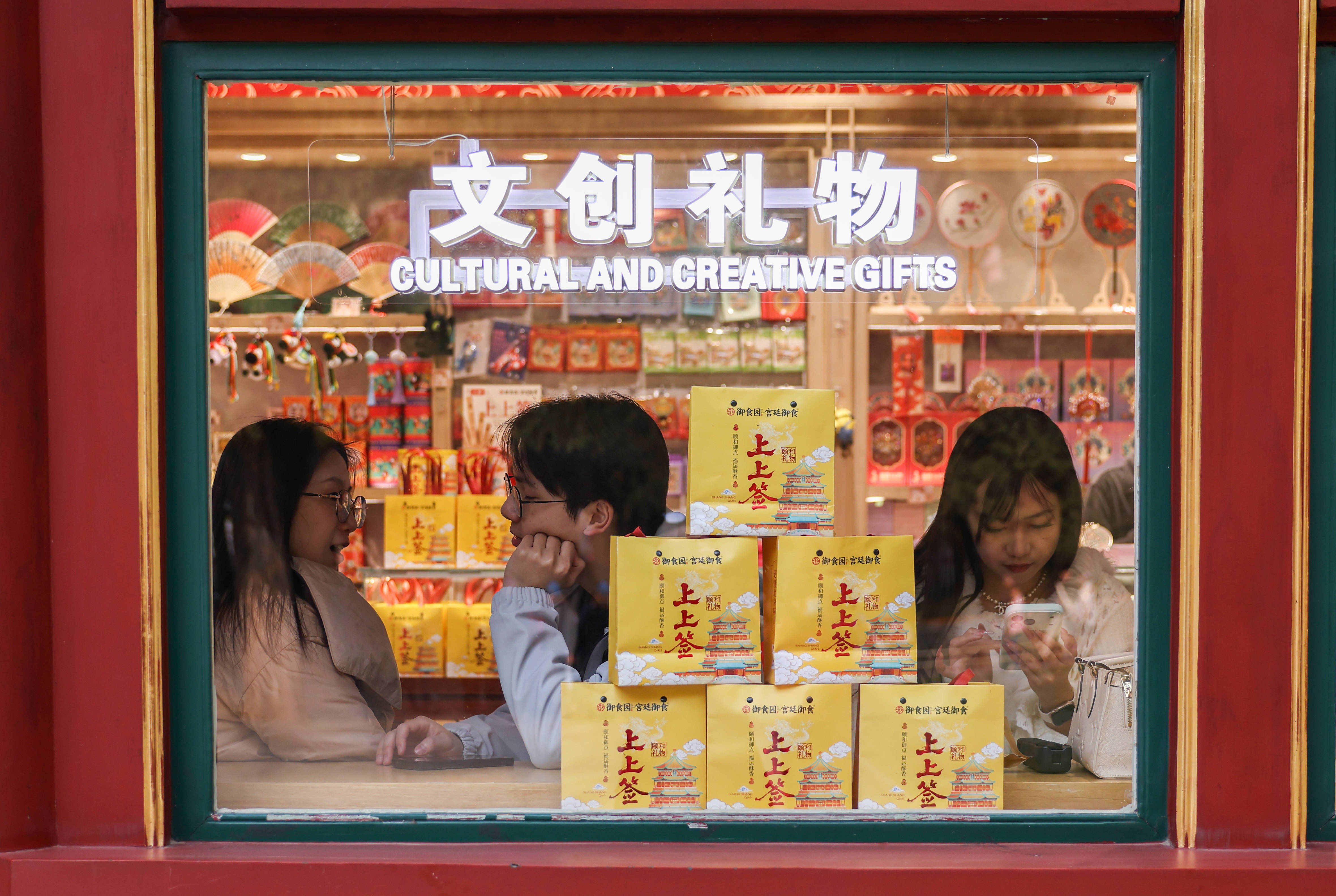 3月23日(ri),游(you)客坐在颐和园文创商品(pin)店窗前。 新华社记者(zhe) 张帆 摄