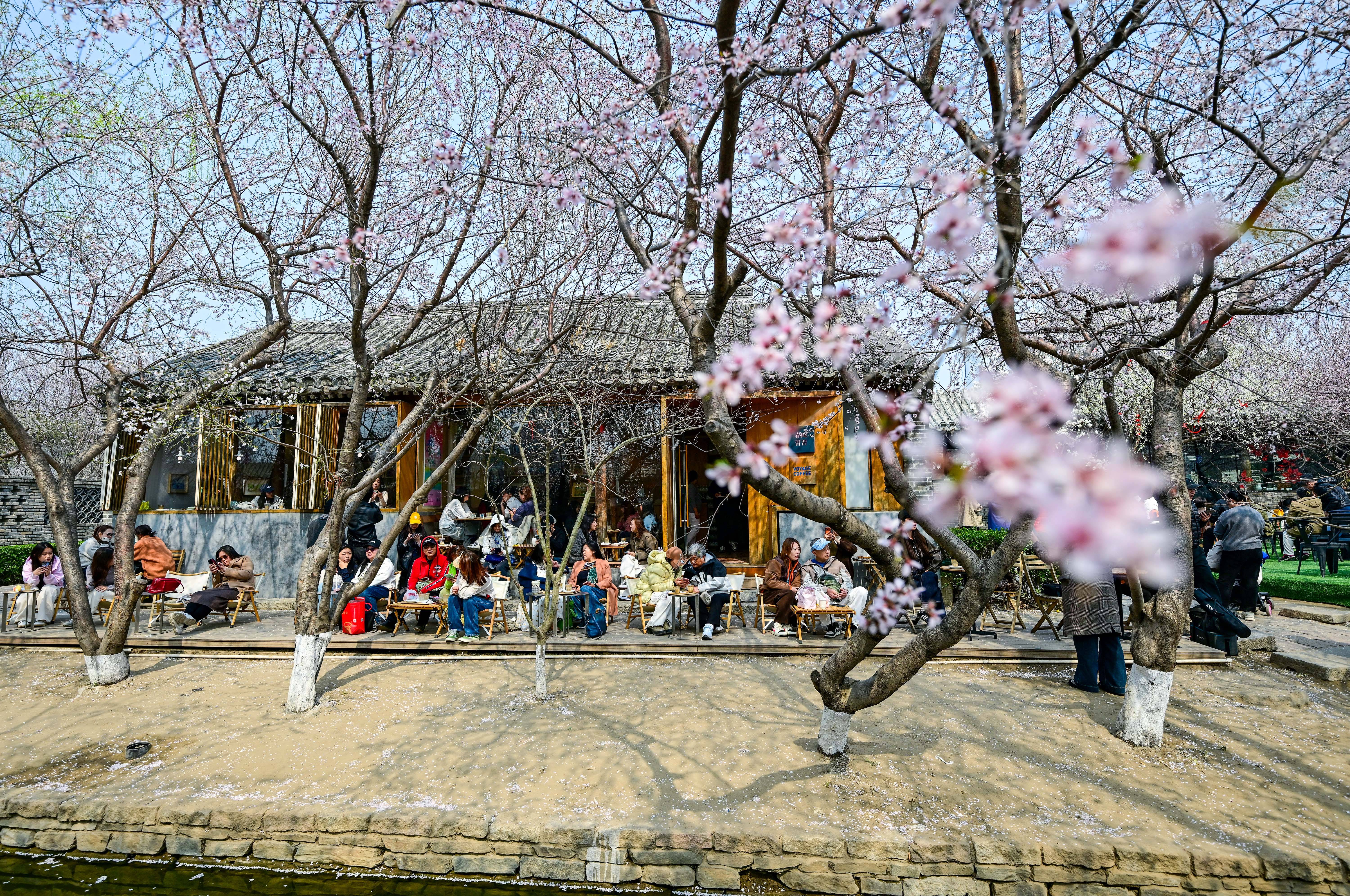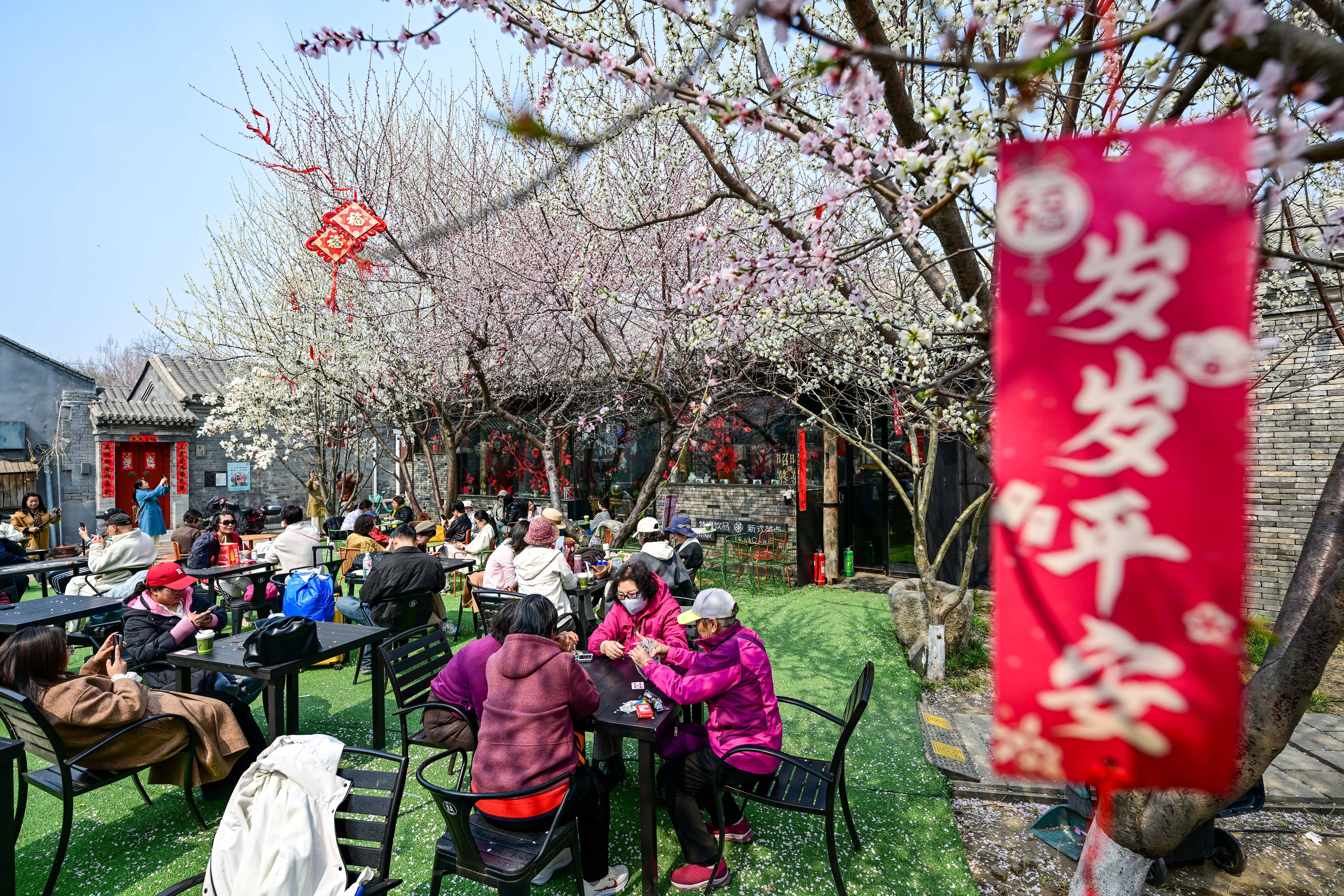 3月23日(ri),游(you)客在北京三里河公园内一家咖啡店消费休闲(xian)。 新华社记者(zhe) 陈晔华 摄