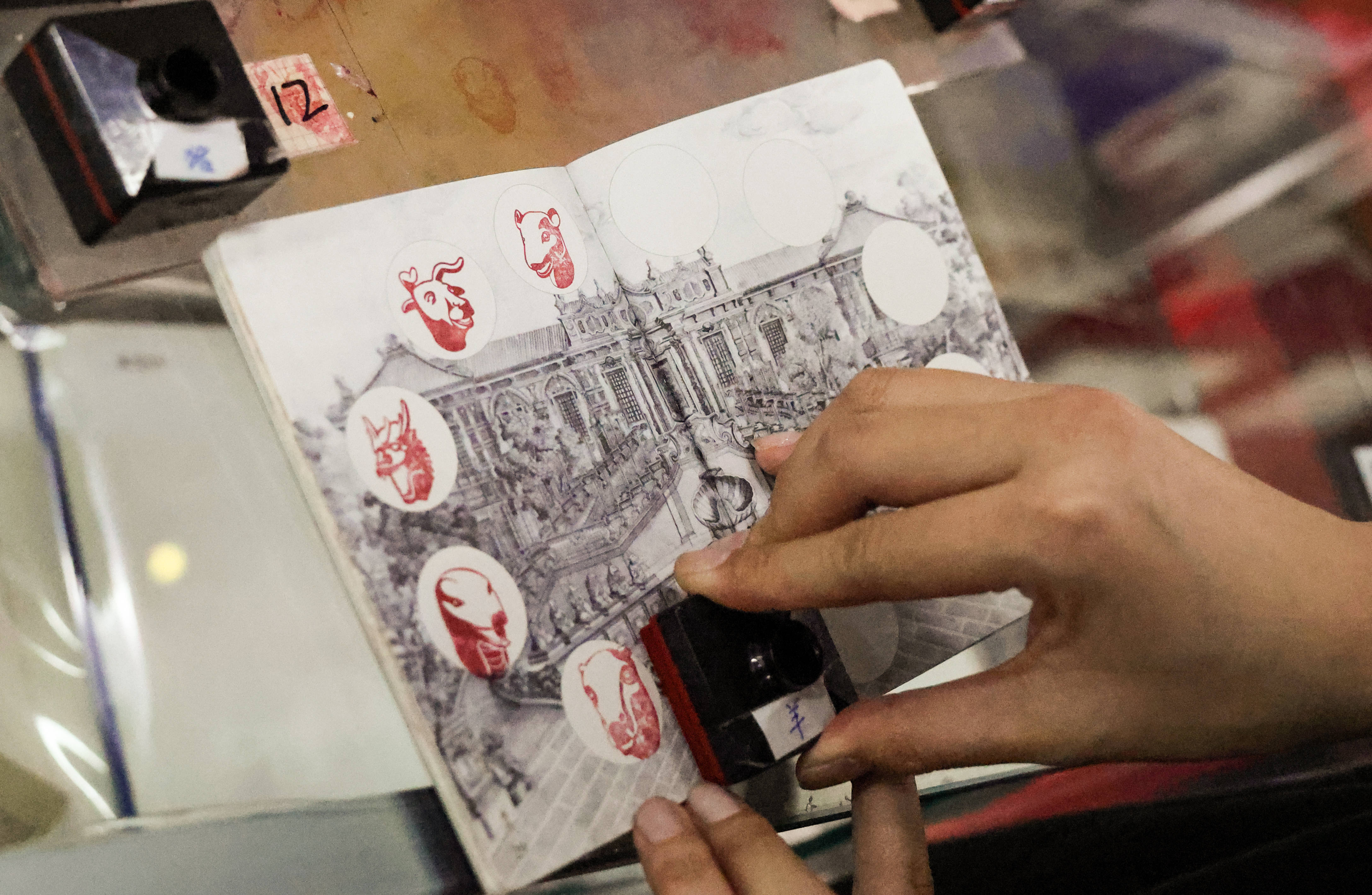 3月23日(ri),一位游(you)客在圆明(ming)园收集创意印章。 新华社记者(zhe) 张帆 摄