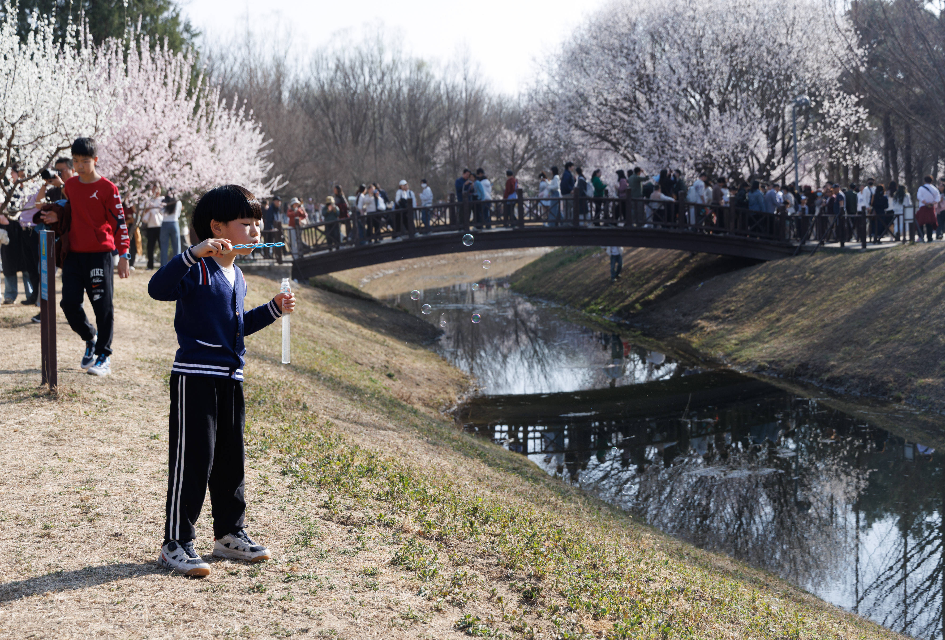 3月22日(ri),游(you)客在北京奥林(lin)匹克丛林(lin)公园赏花。 新华社记者(zhe) 金立(li)旺 摄