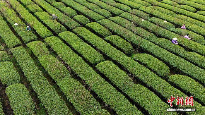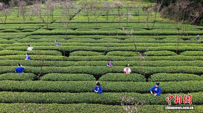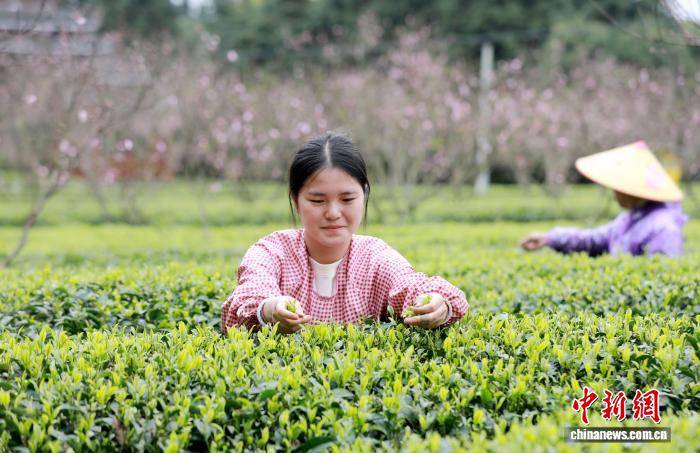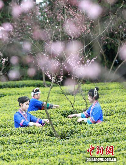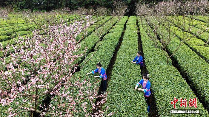 3月24日(ri),广西三江侗族(zu)自治县良口乡寨塘村桃花迎春绽放,与层层叠叠的茶园相(xiang)映成趣,茶农穿越于翠绿茶垄间,巧手翻飞,抢采春茶。粉红的桃花、嫩绿的茶芽、劳碌(lu)的身影,共同勾勒出一幅(fu)诗意盎然的春日(ri)劳作画卷。图为茶农正在采茶。龚普康 摄