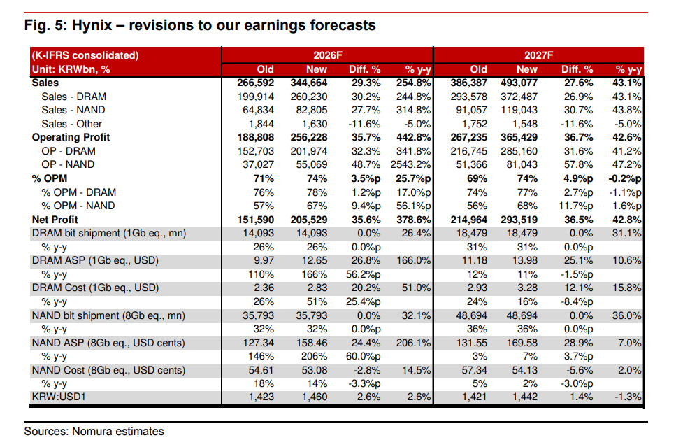 野村预测,SK海力士在(zai)2026年和2027年的业(ye)务利润将分别(bie)上调36%和37%,到达256万亿韩元和365万亿韩元。对于投资者关心的现金(jin)回报,野村估计SK海力士2026财年的自在(zai)现金(jin)流(FCF)收(shou)益率将到达19%,具有显著(zhu)的估值吸收(shou)力。