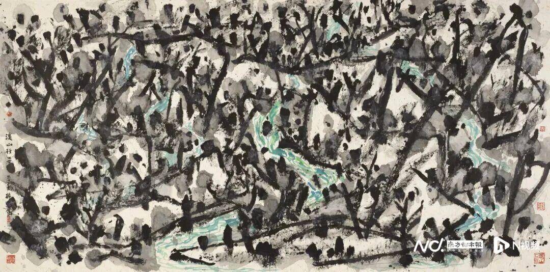 《溪山行之四》 122cm × 250cm 纸本焦墨(mo)设色 2023年