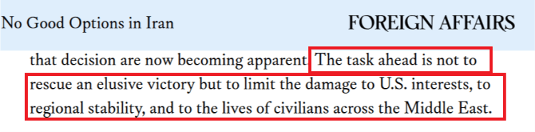 而这将要求美(mei)国接受(shou)一(yi)个事实(shi):在这样的战争(zheng)中,最(zui)负责任的做法不是继续推进以寻求胜利,而是认清何时付(fu)出的代价已超过所得收益,并(bing)在一(yi)场(chang)有限冲突演变为吞噬一(yi)切的泥潭之(zhi)前(qian),及(ji)时抽身。