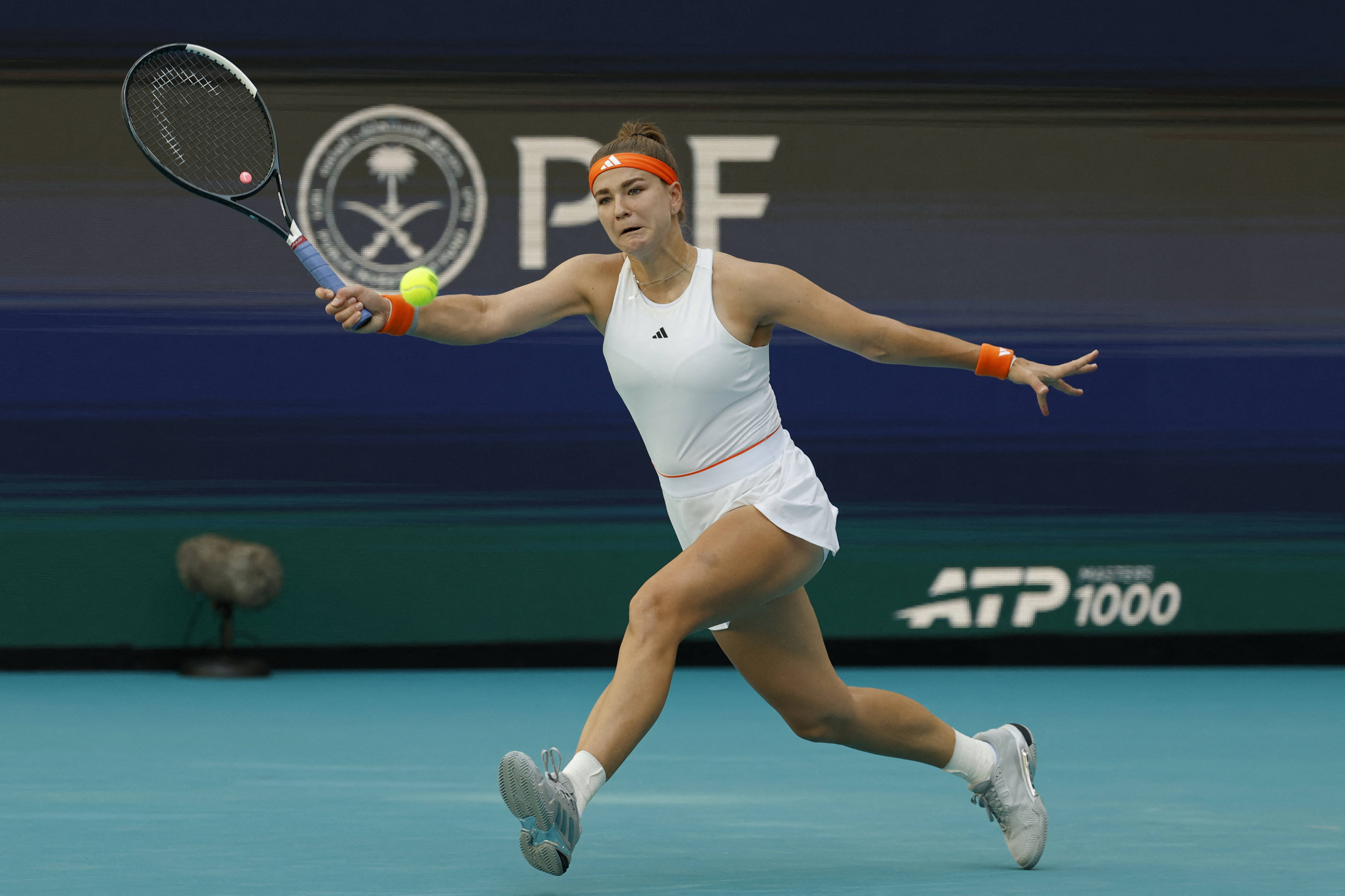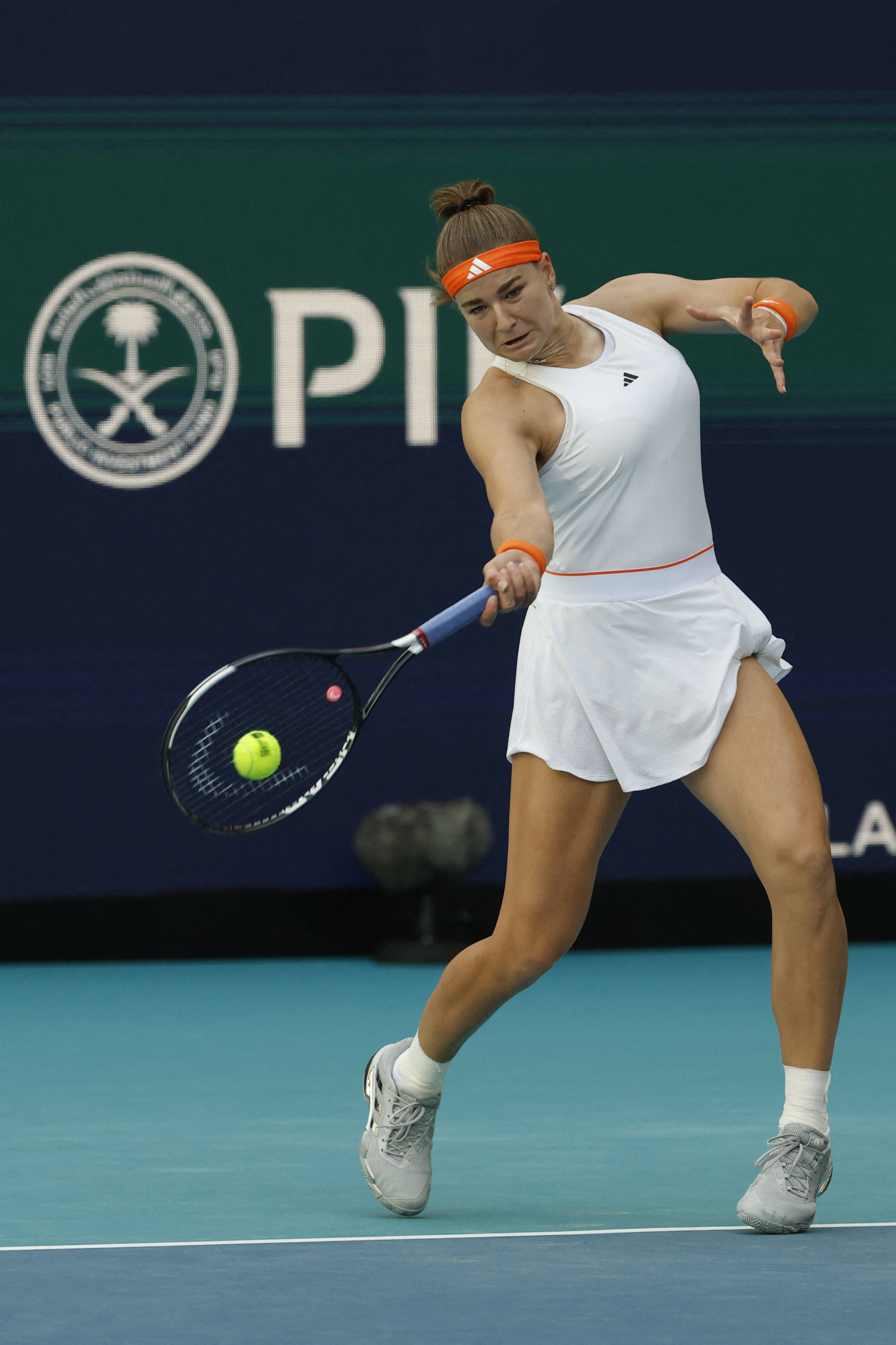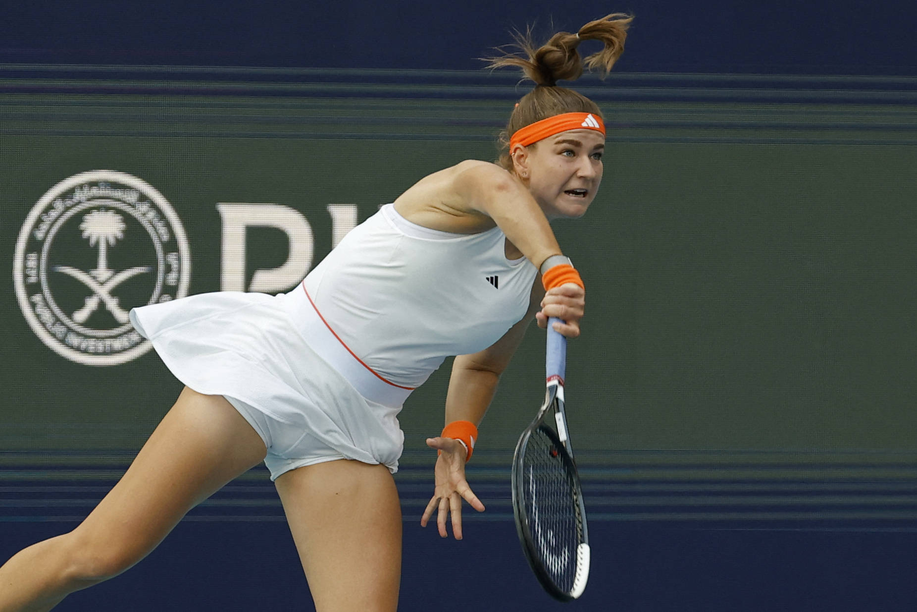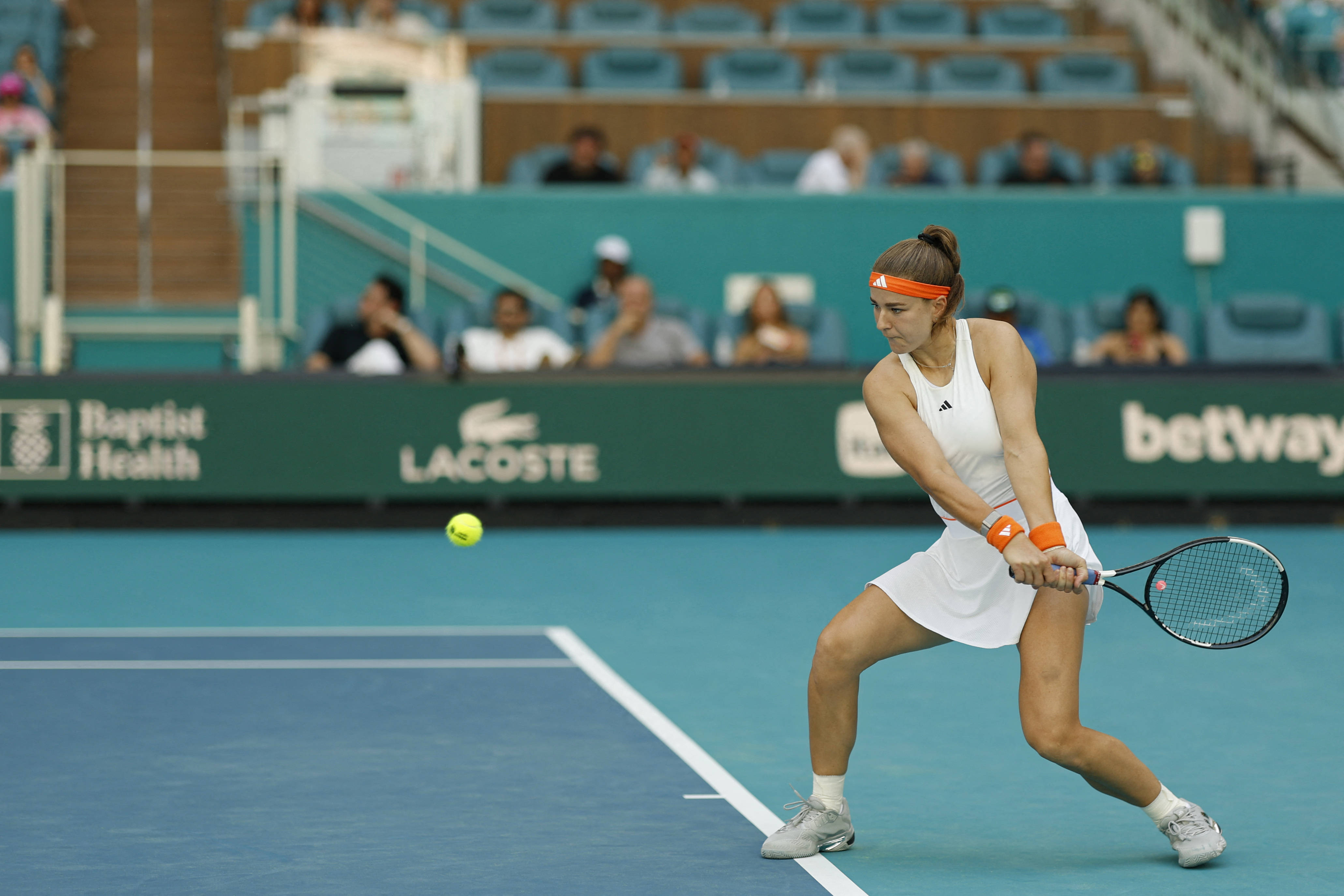 3月24日,穆霍娃正在(zai)比赛中。 新(xin)华社/路透