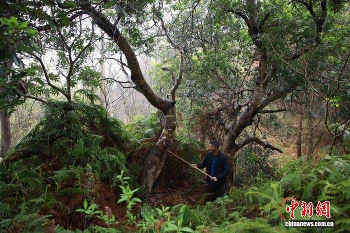 3月26日,古杨梅树珍爱自愿者展开巡山珍爱工作。中新社记(ji)者 孙杨洋 摄