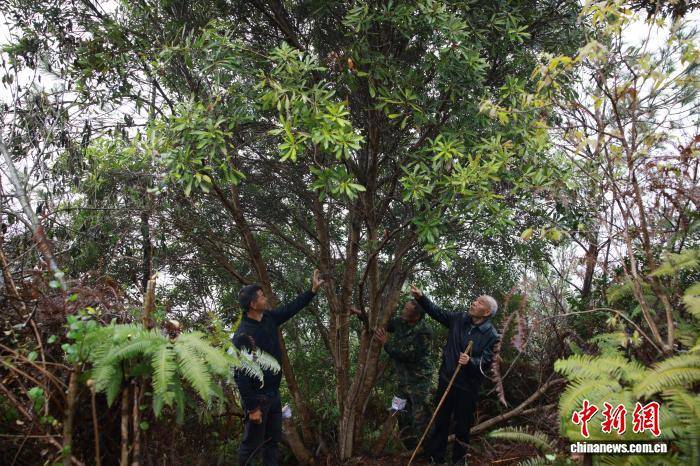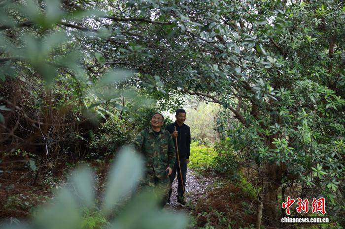 3月26日,古杨梅树珍爱自愿者检察野生杨梅树长势。中新社记(ji)者 孙杨洋 摄