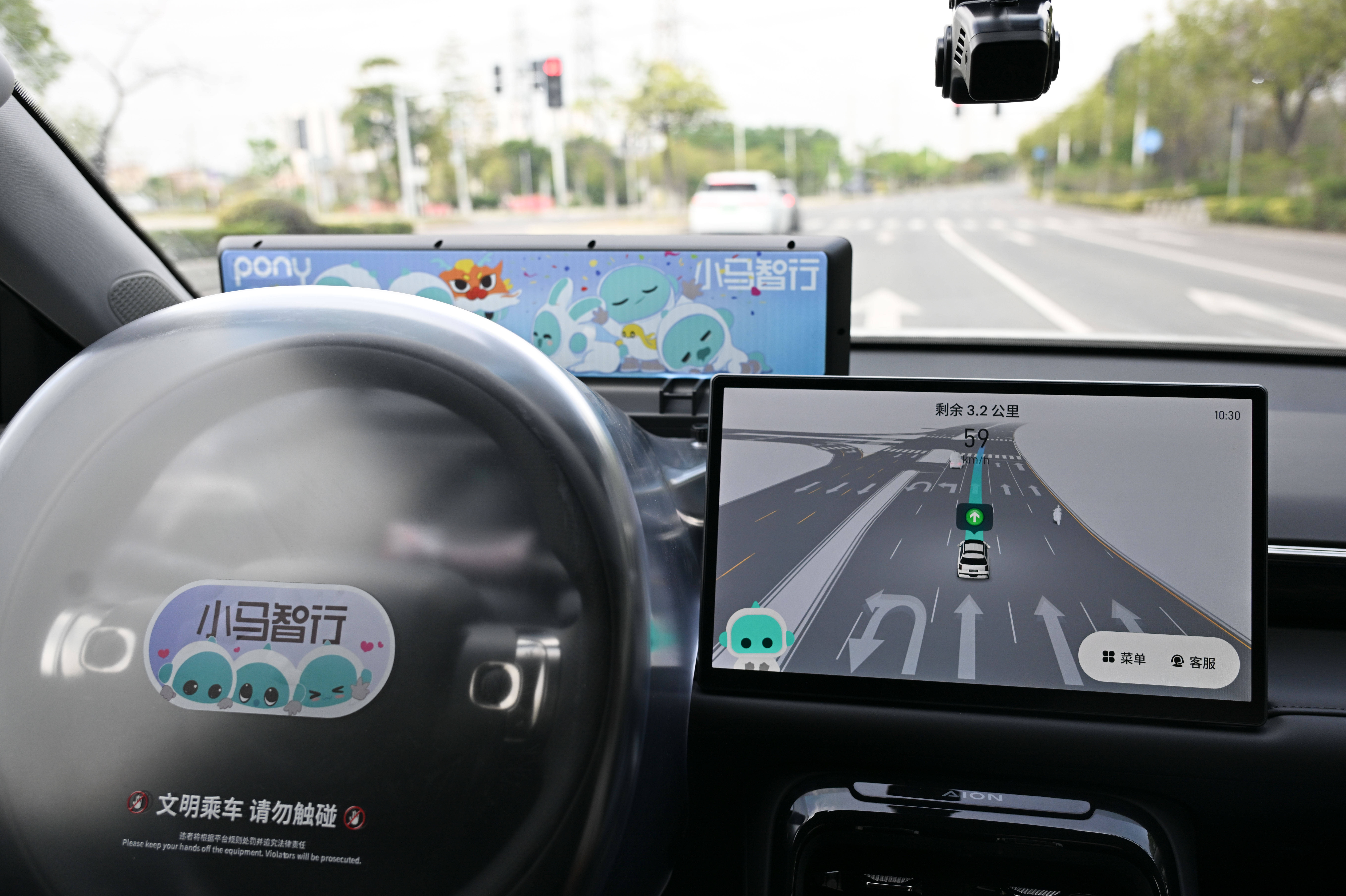 3月24日拍摄的行驶在广州市南沙区的小马智行自动驾(jia)驶出租车车内场景。 新华社(she)记者 邓华 摄