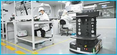高质量疏解发展 在雄(xiong)安(an)科创中心(xin)中试基地,雄(xiong)安(an)百信信息科技(ji)有限公(gong)司的智能运输机器人在运送物料。 新华社记者 牟 宇摄
