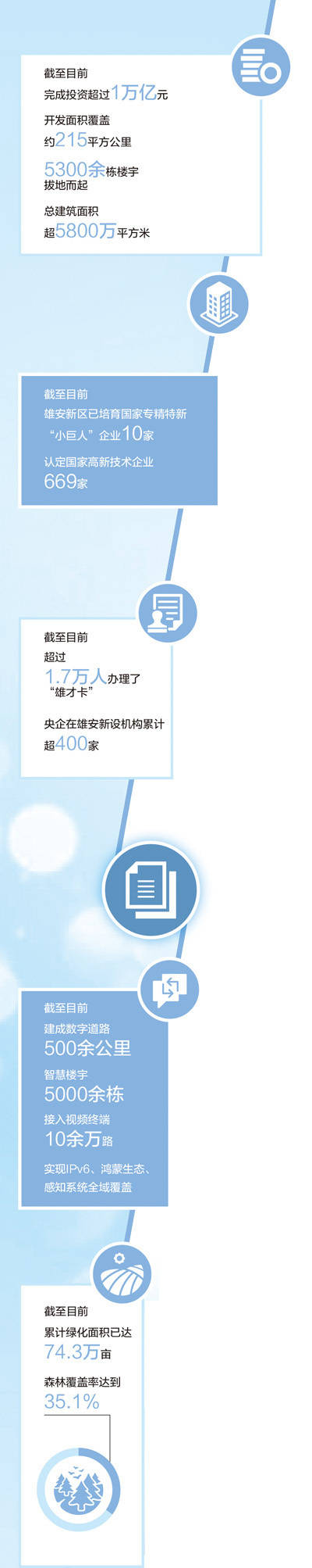 从一块地到(dao)一张图,再到(dao)一座(zuo)城,承载“千年大计”的未来(lai)之城阔步向前。截至目(mu)前,雄(xiong)安(an)新区累计完成投资超万亿元,总开发面积近215平(ping)方公(gong)里,5300余栋楼宇拔地而(er)起。