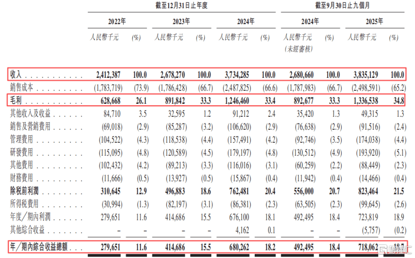2022年、2023年、2024年及2025年1-10月(报告期),公司的支(zhi)出分别为24.12亿元、26.78亿元、37.34亿元、38.35亿元,净利润(run)分别为2.8亿元、4.15亿元、6.76亿元、7.24亿元。
