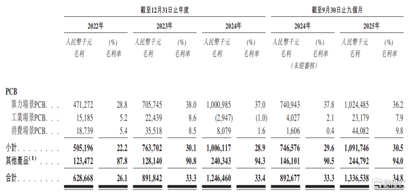 按(an)PCB应用处景(jing)分别的毛利及毛利率明细,泉(quan)源:招股书