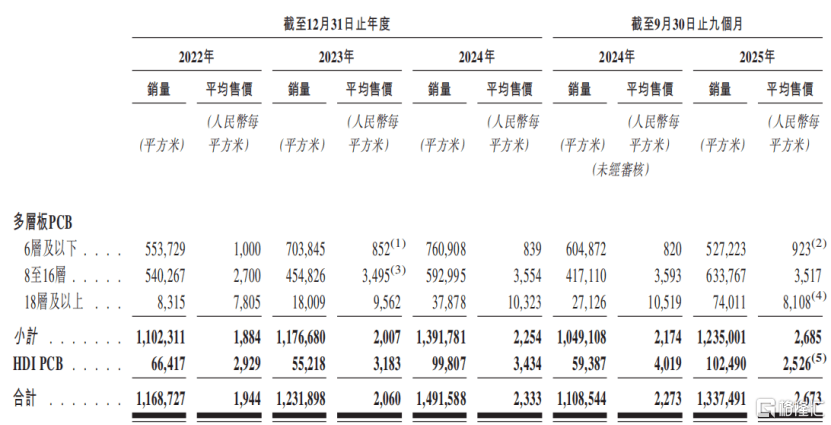 广合科技按(an)产品类别分别的PCB销(xiao)量及平均售价明细,泉(quan)源:招股书