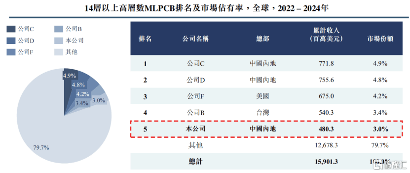 14层以上高层数MLPCB排名及市场(chang)占据率,泉(quan)源:招股书