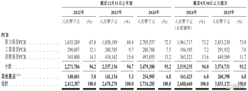 2022年、2023年、2024年及2025年1-9月(报告期),公司来(lai)自算力场(chang)景(jing)PCB的支(zhi)出分别为16.35亿元、18.58亿元、27.06亿元、28.33亿元,占同期总支(zhi)出的比重正在70%摆布。