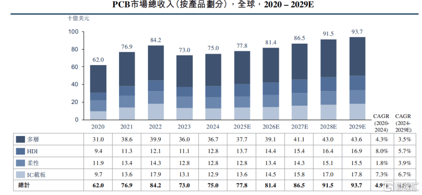 PCB市场(chang)总支(zhi)出(按(an)产品分别),泉(quan)源:招股书