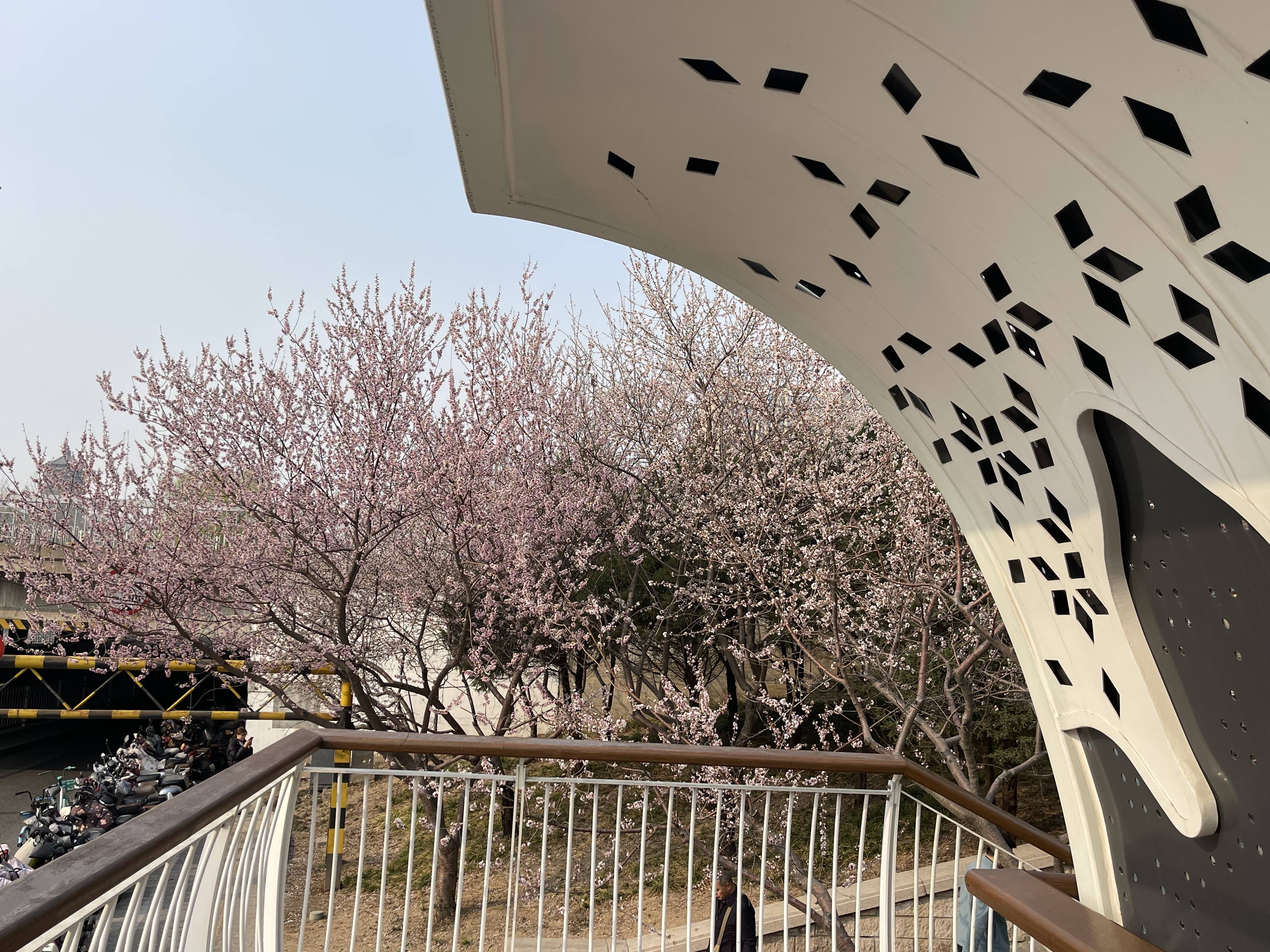 在社交平(ping)台上,西钓鱼(yu)台、慈寿(shou)寺、雍和宫地铁站旁的花朵(duo)绝对(dui)是出片儿大户。地铁10号线西钓鱼(yu)台站的春日美景位于收支站的空中(zhong)栈桥,从C口出站,走(zou)上充满艺(yi)术感的栈桥,便能与满枝桃花零距离接触,让人仿佛穿(chuan)行(xing)在空中(zhong)花廊。这座栈桥没(mei)有仅是赏景佳地,更是方便市民高(gao)低班出行(xing)的巧(qiao)思,上层通行(xing)赏景,下层规划了非灵活车(che)停放区,既办理了地铁站周边的通行(xing)问题,又(you)将(jiang)春日美景融(rong)入乡村交通。