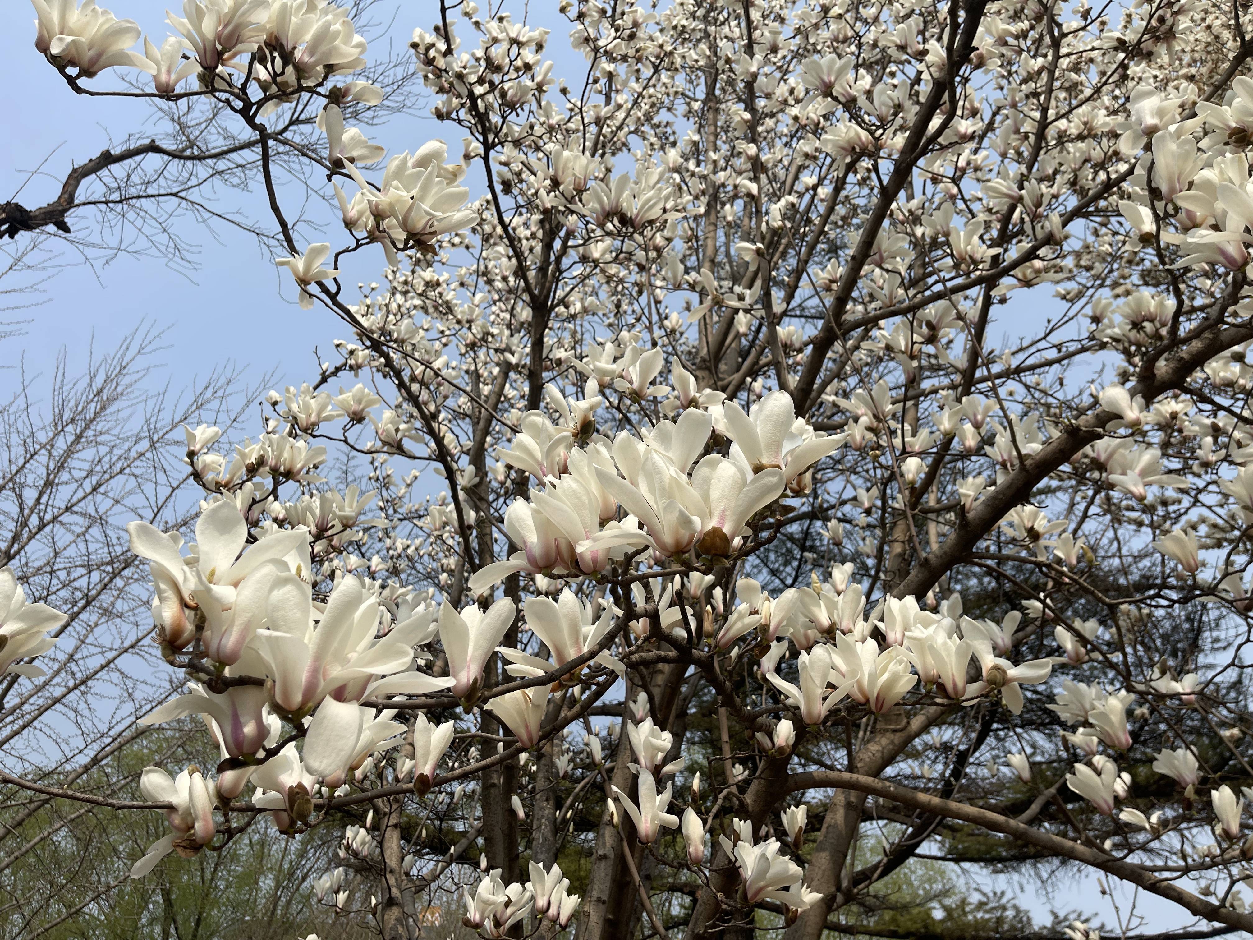 3月(yue)23日中(zhong)午,记者从开国门地铁A口出站,迎面便是两株玉兰,枝头缀满紧实的花苞,有一小部份已经悄然绽(zhan)放,花瓣莹白如玉,层层舒展。沿路往北走(zou),便是大片的绿地和花园,这里的几株白玉兰开得更为热烈,枝丫上的花朵(duo)密密匝匝,和风拂过,花瓣悠悠飘落,引得往来市民纷(fen)纭立足拍照。