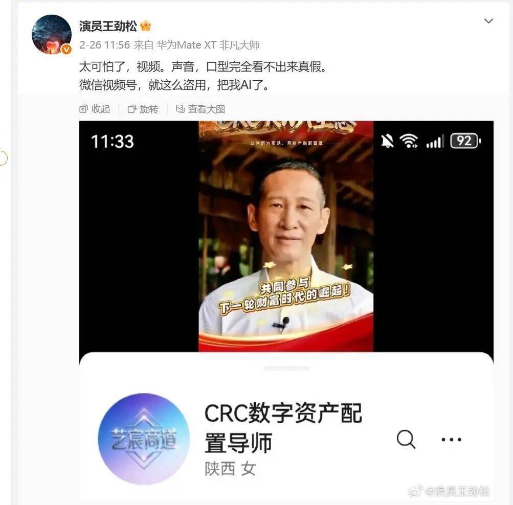 著名演员(yuan)王劲(jin)松的微博截图