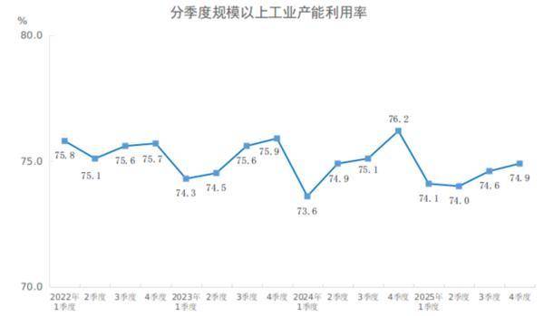 中国网财经1月19日讯 据国家统计局消(xiao)息(xi),2025年(nian)四季度,全国规模(mo)以上工业产能利用率为74.9%,比(bi)三季度上升0.3个百分(fen)点,比(bi)上年(nian)同期下降1.3个百分(fen)点。2025年(nian)全国规模(mo)以上工业产能利用率为74.4%。