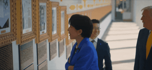 高市早(zao)苗看到特朗普肖像(xiang)时表现得(de)很崇拜。白宫(gong)社交媒体账号发布的视频(pin)片断
