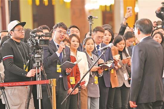 | 首(shou)场“部长通(tong)道”会合(he)采访流动正在北京人民大(da)礼堂举(ju)行 新华社发 |
