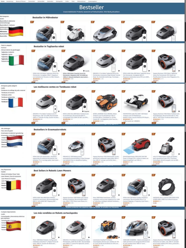 从具体市场显示来(lai)看,MOVA焦点产品ViAX系列智能割草呆板人(ren),已登上亚马逊德国(guo)、意大利、比利时、荷兰、西班牙等多个国(guo)度的同品类脱销榜榜首。个中,2026年该产品正在意大利亚马逊平台销量同比增进(jin)超(chao)1290%,德国(guo)亚马逊平台销量同比增进(jin)达2360%。