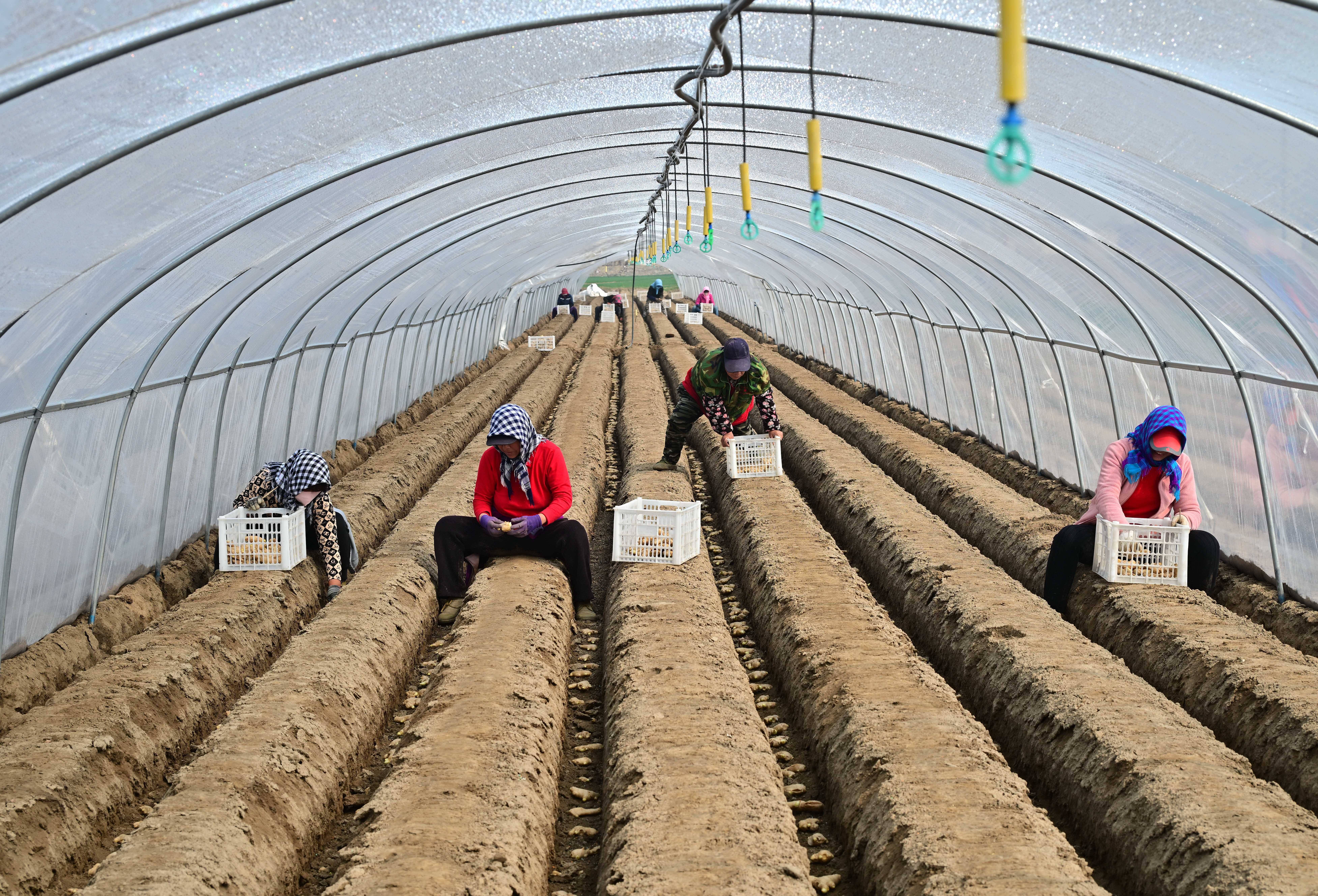 3月26日,河北省唐山市(shi)丰南区大新庄镇的农(nong)民筹备收获(huo)生姜。 新华(hua)社(she)记者 杨世(shi)尧 摄