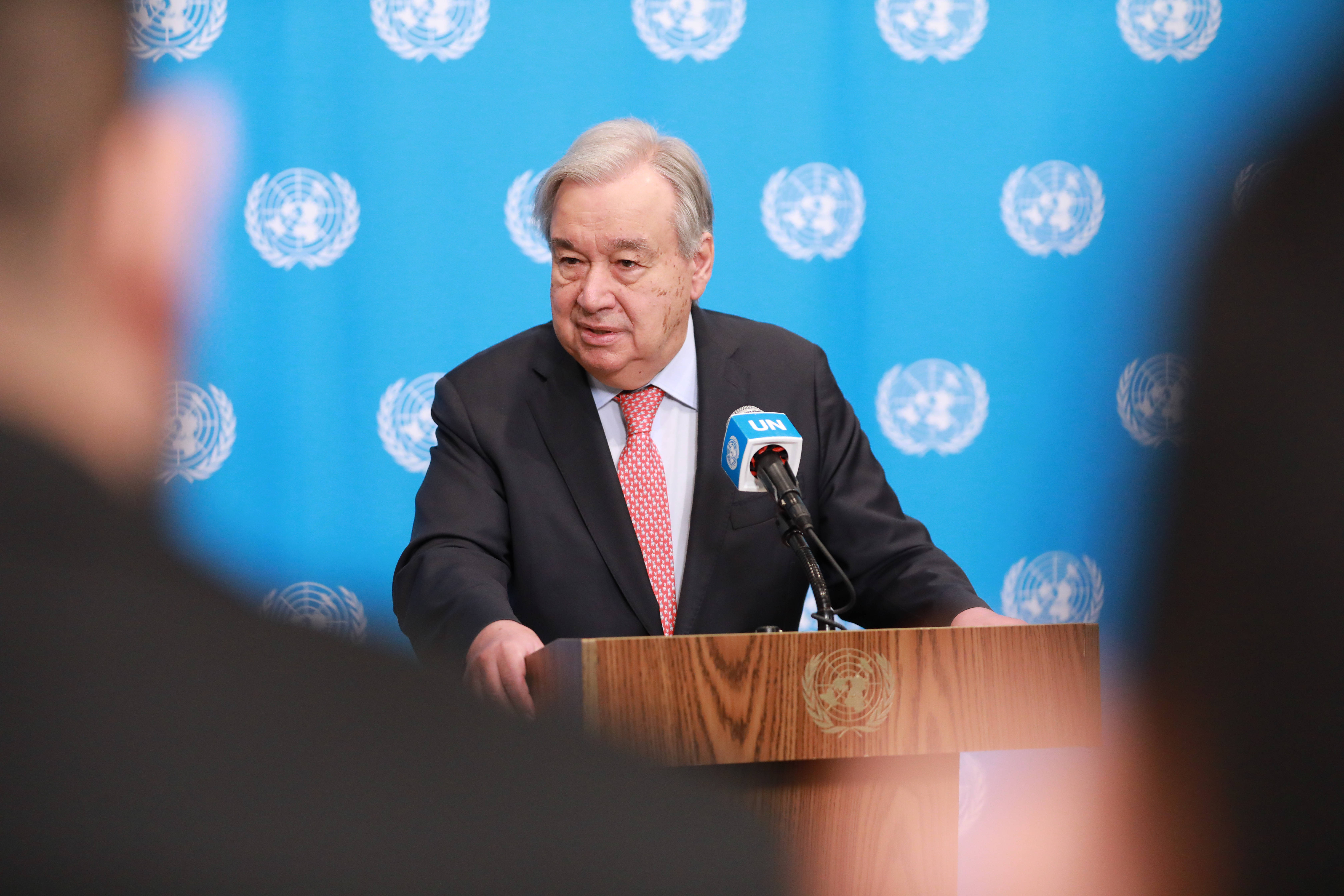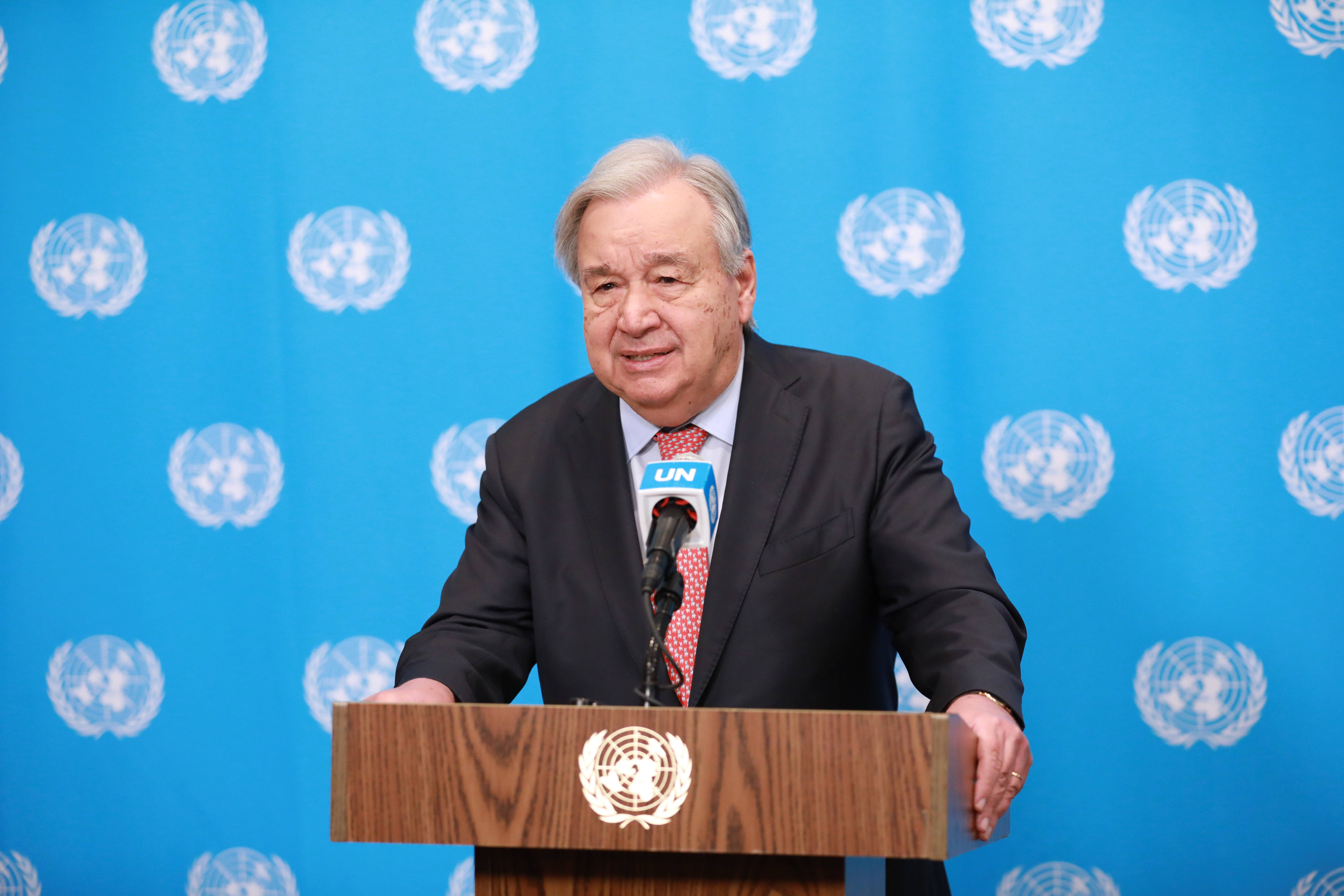 3月25日,团结国秘(mi)书长(chang)古特雷斯正在位于纽约(yue)的团结国总部举行的记者会上发言。 新(xin)华社记者 谢锷(e) 摄