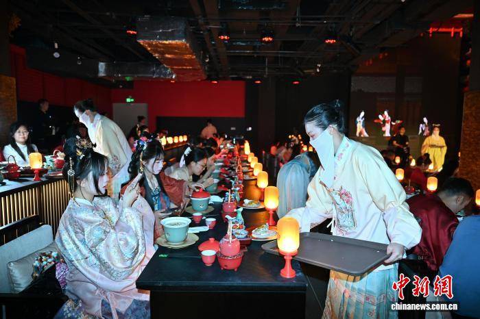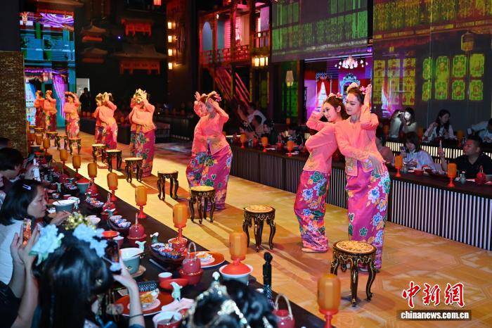 图为衣(yi)着古装的(de)工作职员为宾客上菜。中新社记(ji)者 陈楚红 摄